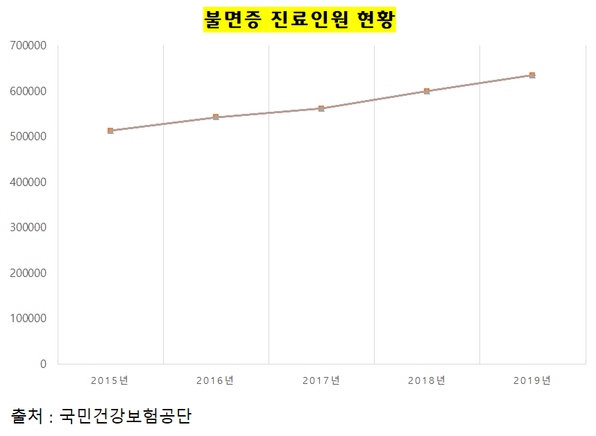 지난 5년 사이 불면증 진료를 받은 환자 수를보면 2015년 51만 명에서 2019년 63만 명까지 증가하였고 올해 2020년 에는 상반기에만 38만명 이상이 불면증 진료를 받았다고 합니다. 이처럼 많은 분들이 수면장애를 겪고 있습니다.