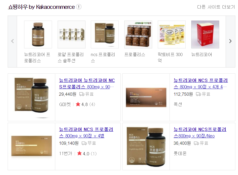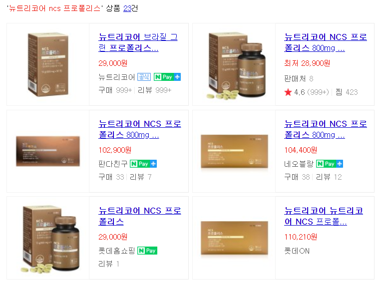 뉴트리코어 ncs 프로폴리스는 온라인 상에서 쉽게 구매하실 수 있는데요 제가 알아본 가격은 90정 기준으로 약 28,000원 대의 가격이 가장 저렴했어요.