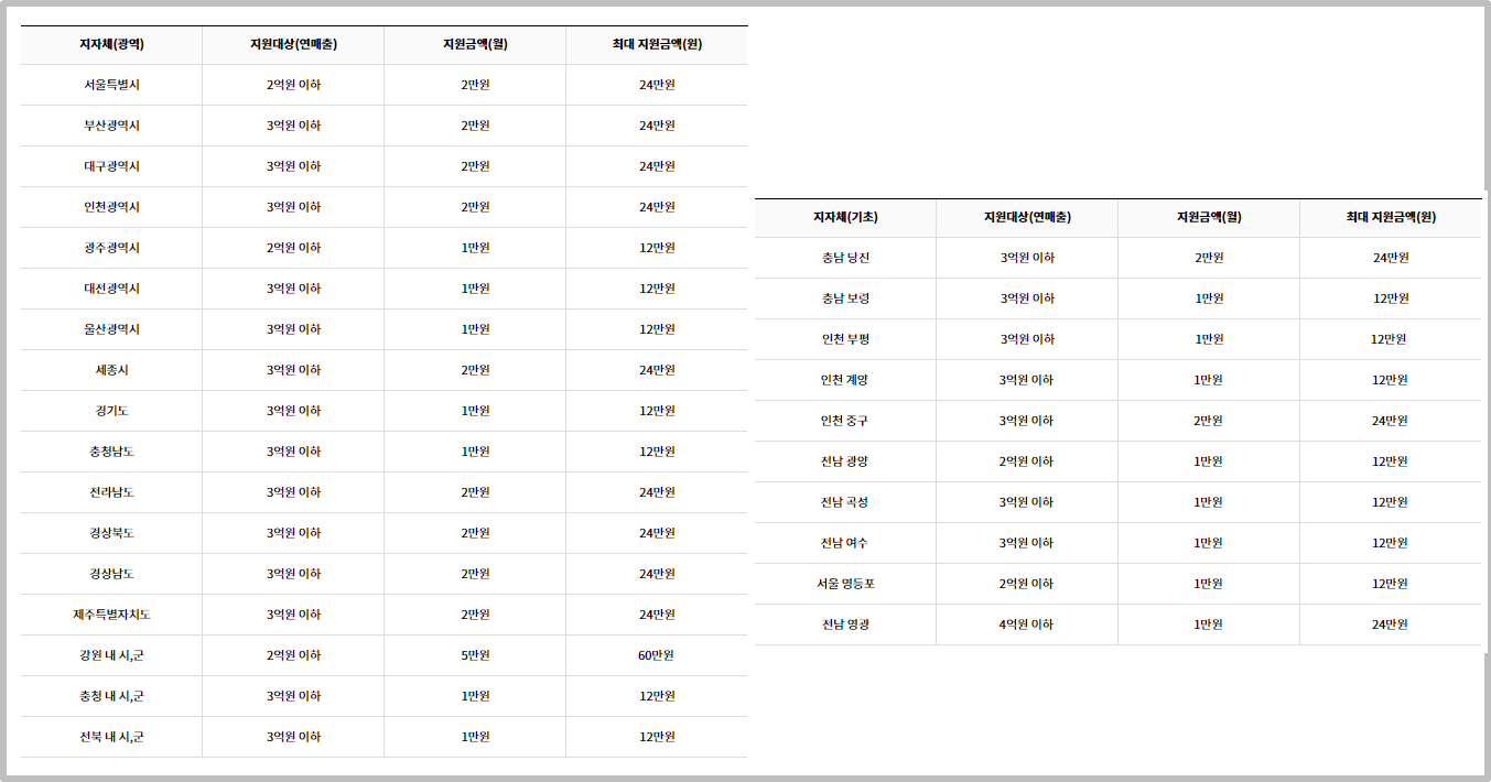 - 사업체 재무제표 또는 부가세 과세표준 증명원 등 매출액을 확인할 수 있는 서류