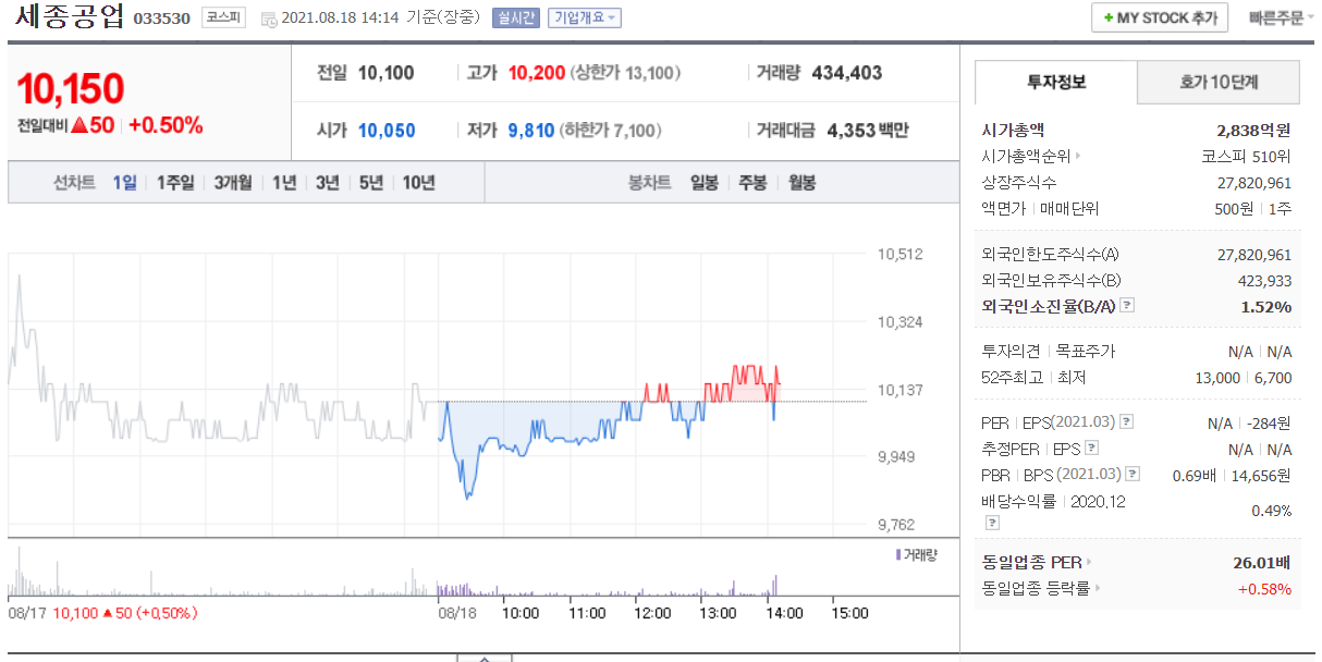 수소 관련주 : 세종공업