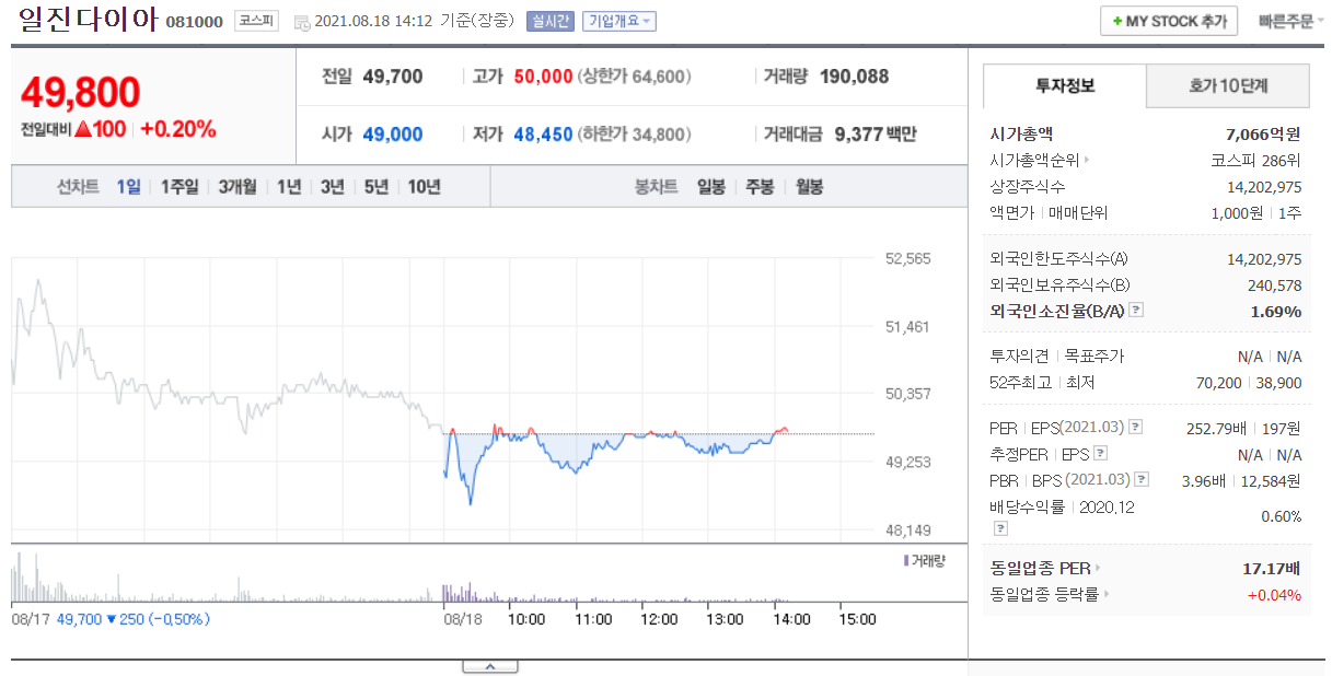 수소 관련주 : 일진다이아