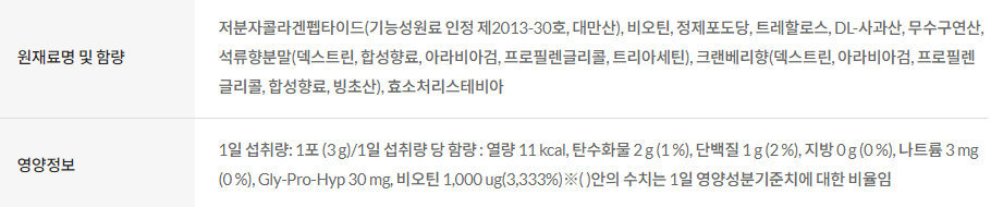 에버콜라겐 타임비오틴의 주요 성분은 저분자콜라겐펩타이드와 비오틴입니다.